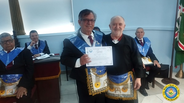 Momento que o Irmão Antônio Nestor recebia o diploma de Maçom Notável