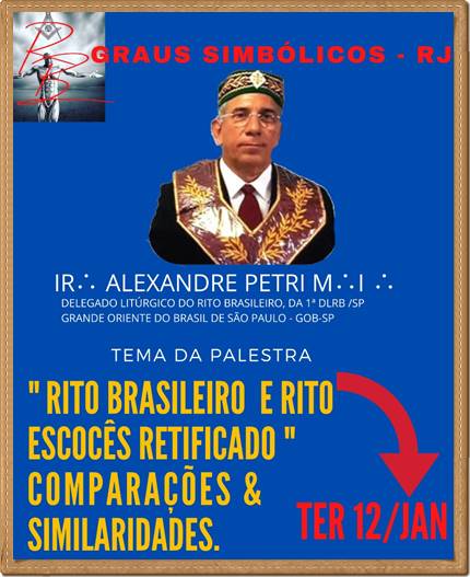 Palestra do Irmão ALEXANDRE PETRI, MI∴ Delegado Litúrgico do Rito Brasileiro da 1ª DLRB, Grande Oriente do Brasil – São Paulo, tendo como mediador o Irmão João Dias - obreiro da ARLS∴União Ordem e Progresso nº 1229 GOB-RJ, editor de vídeo o Irmão César Santos - obreiro da ARLS∴ Monte Castelo nº 1764 GOB-RJ. Palestra virtualmente ocorrida em 12/01/2021. Inscreva-se em nosso canal maçônico do Youtube - |